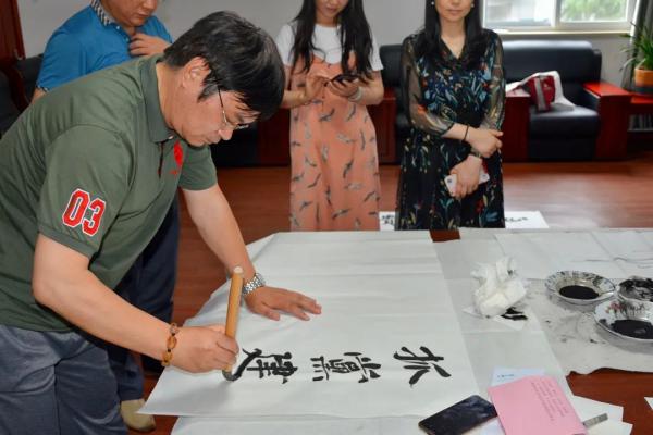 黨建共建“迎七一·頌黨恩·話廉政”主題活動中,邀請了儀化老科協書畫家一行蒞臨公司參觀服務大廳、天然氣調壓站并舉行了座談,公司主要負責人作了黨建共建交流匯報。隨后,在公司二樓會議室,老科協書畫家們現場揮筆灑墨“頌黨恩”。