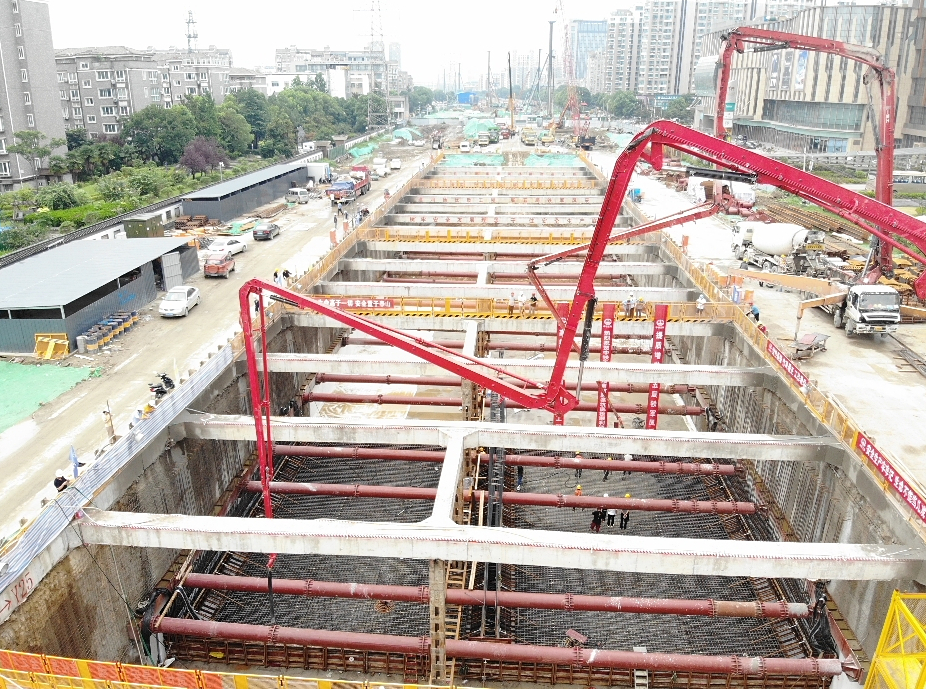 為確保首段底板順利澆筑,項(xiàng)目部精心組織,高度重視,提前召開方案討論會(huì),進(jìn)行專項(xiàng)安全和技術(shù)交底,明確混凝土澆筑方法、注意事項(xiàng)、強(qiáng)度、配合比及養(yǎng)護(hù)措施等,完成防水層安裝、鋼筋綁扎、模板安裝等前置施工工序,為首段底板澆筑提供先決條件。