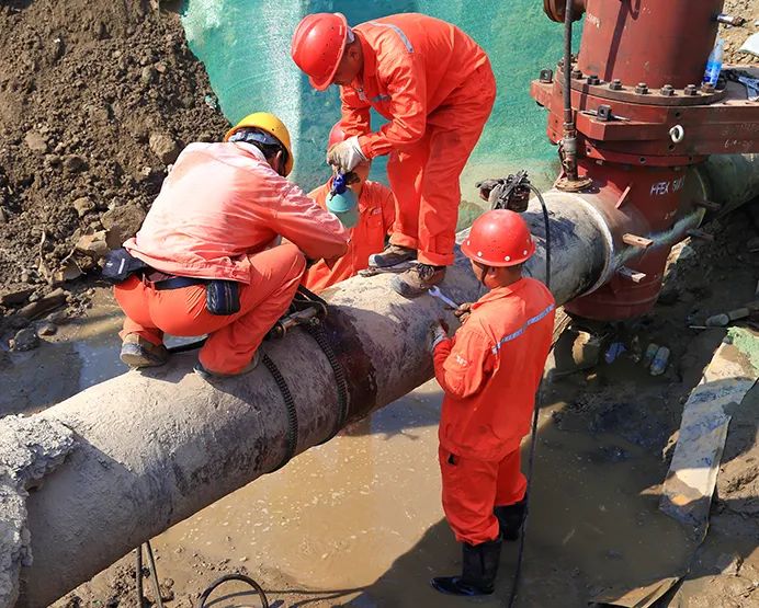 在不間斷施工的10小時過程中,先后完成管道斷管、焊接、新舊管道碰接,恢復新管道供氣全過程施工,確保了棲月苑小區、潤揚中學和清華園小區的晚餐正常用氣。
