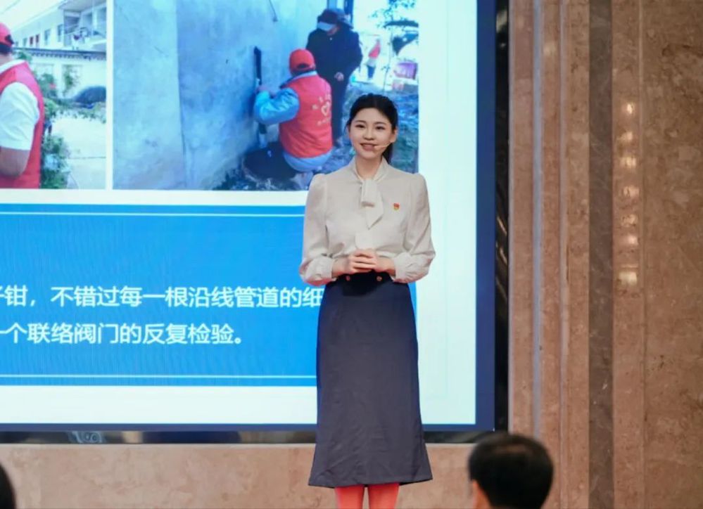 來自市民卡公司郭艷花主講的黨課以《管子鉗的榮光》為題,通過講述城控水務(wù)人在60年的接續(xù)奮斗中,創(chuàng)造并傳承“咬得緊、不放松,全心全意為人民服務(wù)”的管子鉗精神,專注于供水事業(yè)的開拓與發(fā)展,展現(xiàn)了城控集團(tuán)深入踐行以人民為中心的發(fā)展思想,不斷實(shí)現(xiàn)人民對美好生活的向往而作出的不懈努力。該黨課獲得了本次選拔賽的三等獎(jiǎng)。