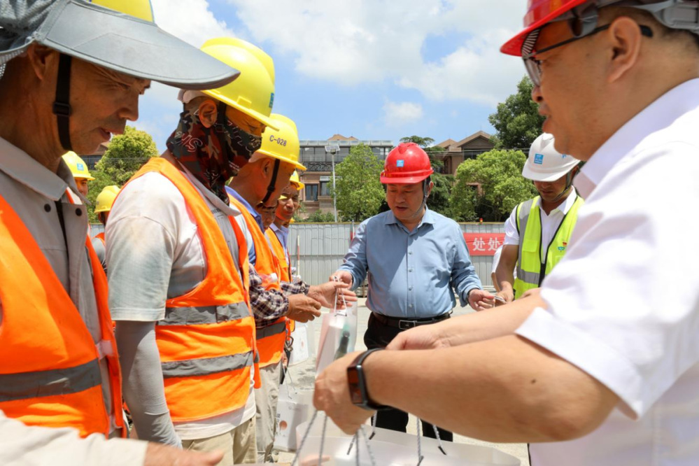 “高溫天氣,工作辛苦,大家要好好照顧自己,做好個人防護。” 炎炎夏日送清涼,滴滴關愛暖人心。每到一處,城控集團董事長張思忠都詳細詢問職工們高溫天氣下的工作和生活狀況,叮囑大家,勞逸結合,做好防護,確保安全生產和身體健康。