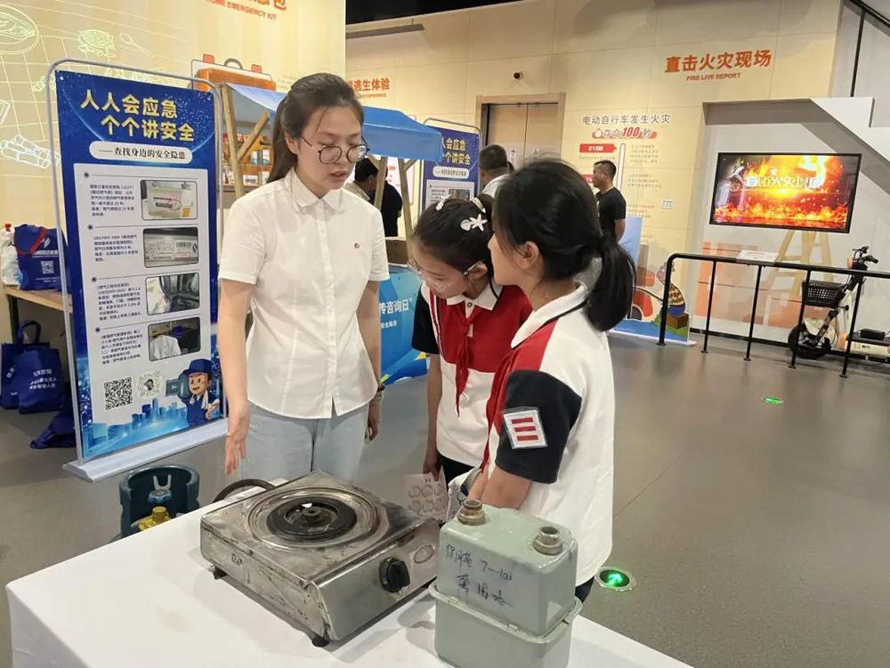在燃氣安全主題展館,揚州中燃公司開設了“一起找隱患”互動專區,鼓勵市民在現場參與查找身邊燃氣隱患,并根據市民查找出的隱患數量發放相應的小禮品。針對參與互動的小學生,宣傳人員通過發放卡通版《燃氣安全手冊》、隱患識別趣味問答、燃氣設施實物觀摩等方式講解常見的燃氣隱患和可能造成的事故后果。