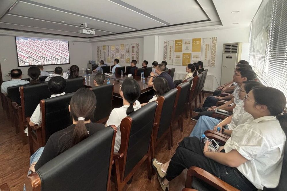 集中觀看現場氣氛莊重肅穆,大家全神貫注地觀看直播,認真聆聽習近平總書記重要講話,深刻感悟抗戰勝利的偉大意義和歷史啟示。當國旗護衛隊邁著鏗鏘步伐走來,當鮮艷的五星紅旗冉冉升起,當新型裝備方隊展示大國重器時,大家不由涌現出對祖國的深情熱愛和崇敬之情,同時為國家科技的飛速發展和人民軍隊的強盛軍威感到無比驕傲和自豪。